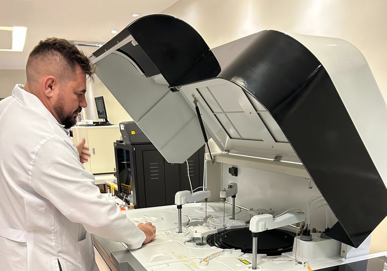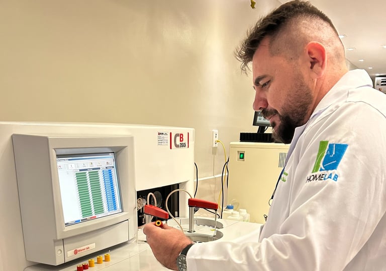 Análises detalhadas de Sangue, Urina e Fezes, englobando Bioquímica, Imunologia, Hematologia e Citologia. Resultados essenciais para um diagnóstico preciso.